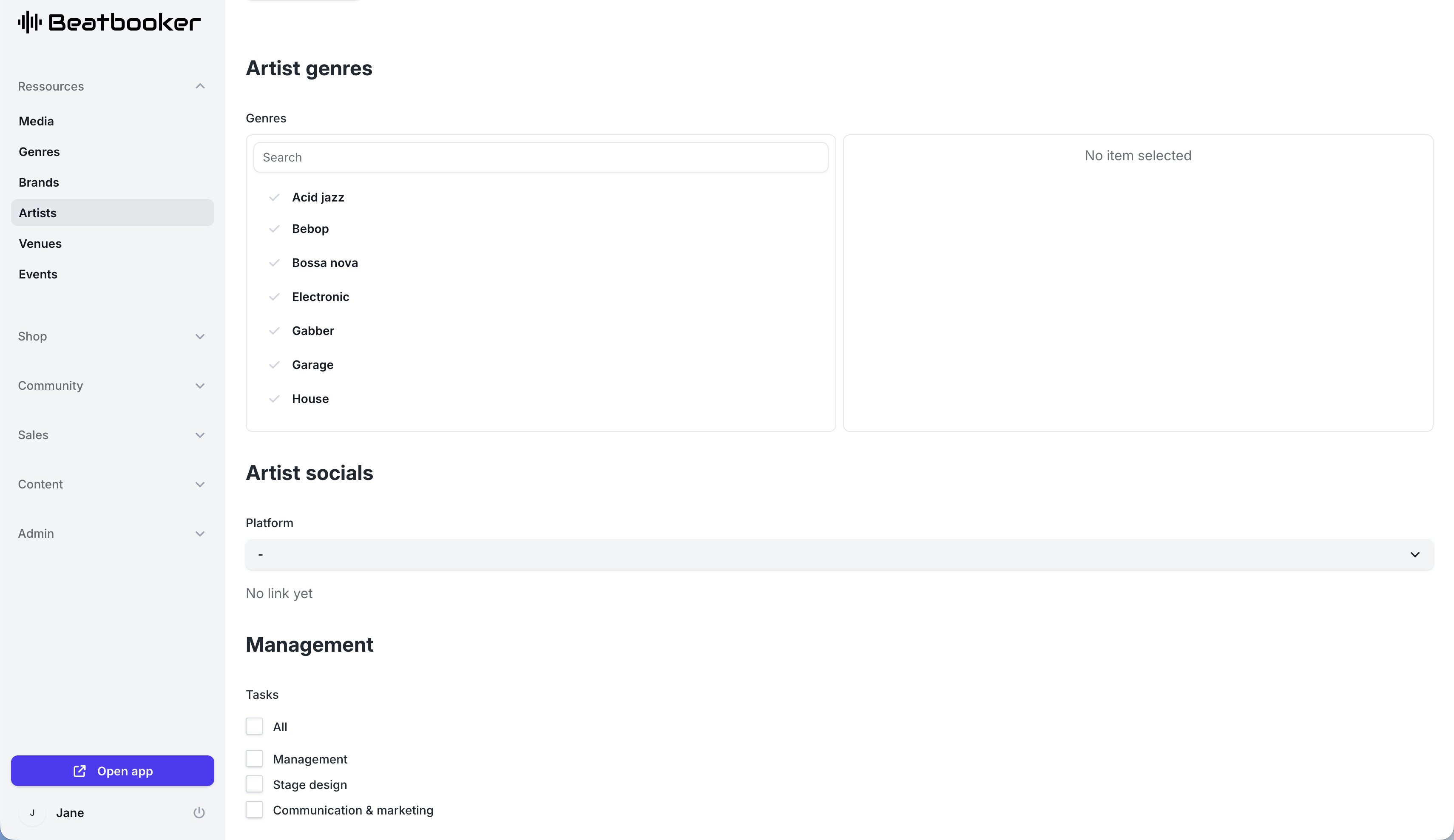 Les artistes sont utilisés dans les événements, et peuvent faire partie d'un système de management. Pensez à configurer les réglages des artistes