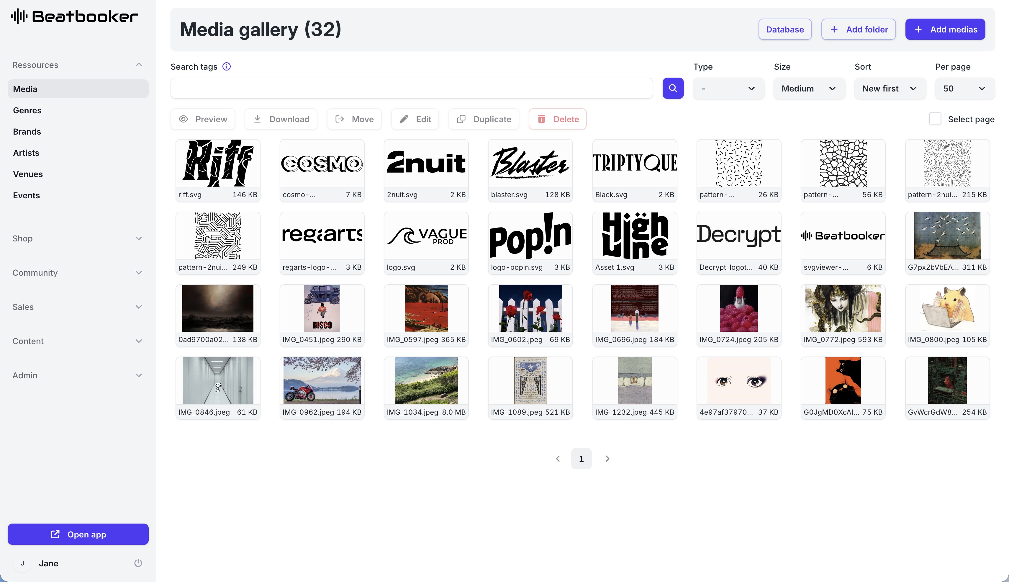 La médiathèque vous permet d'organiser et de gérer les médias de votre site, qui sont ensuite utilisés par les événements, les artistes, les pages éditables...