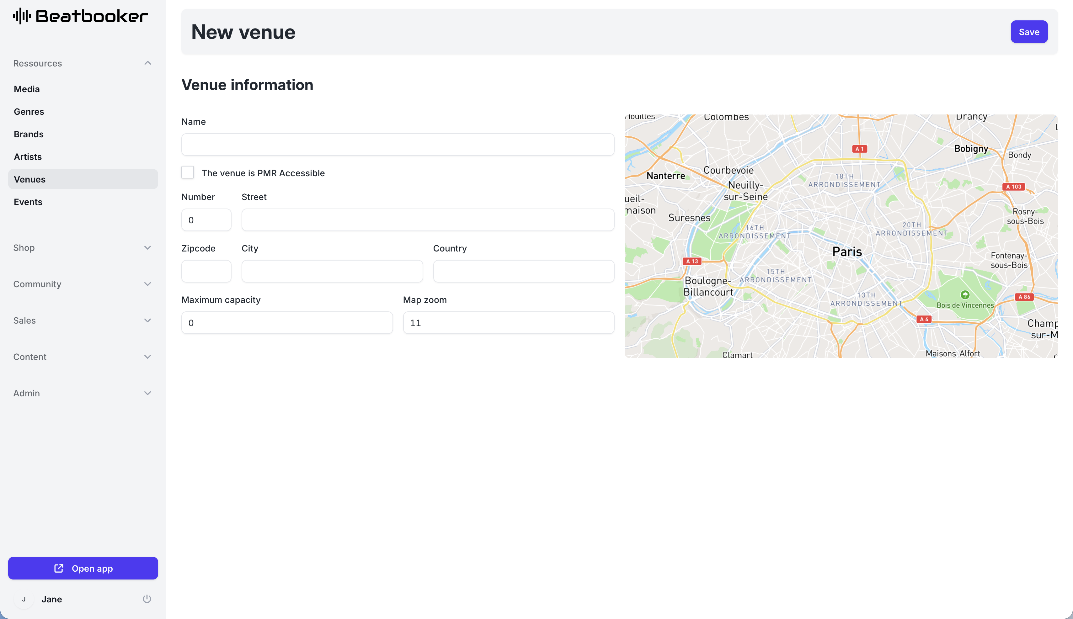 Lorsque vous créez ou modifiez un lieu, vous devez renseigner :